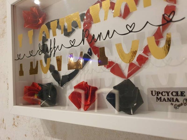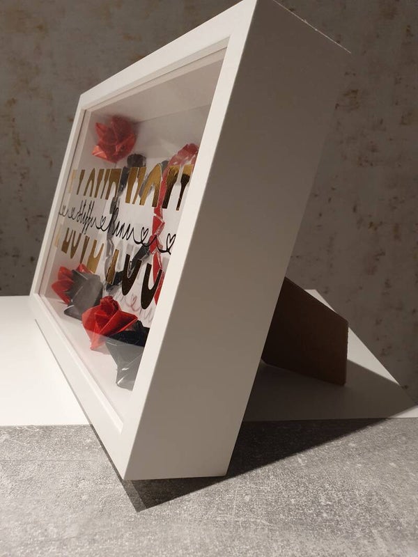 Der Bilderrahmen ist 21x30 cm. Er kann aufgehängt oder aufgestellt werden.